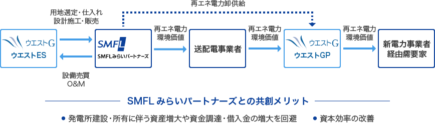 SMFLみらいパートナーズとウエストHDの協業による発電事業のスキーム